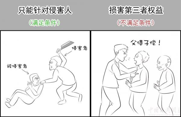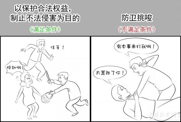 大多数正当防卫是采用损害不法侵害者的利益的方法实施的,法律为防止其滥用,严格规定了正当防卫的成立条件。只有合法的防卫行为,才属正当行为,不负刑事责任。