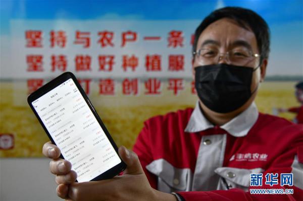 在山东省泰安市宁阳县葛石镇大夏庄村,山东丰信农业科技开发有限公司的工作人员展示农户在“丰信之家”APP上的订单(2月13日摄)。 新华社记者 郭绪雷 摄