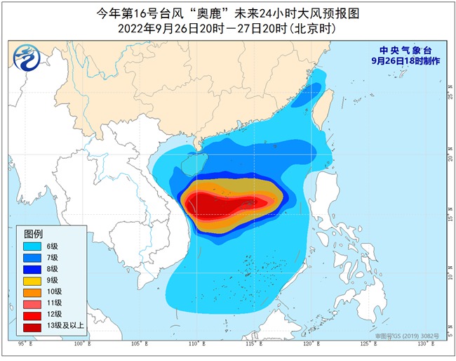 大风预报:26日20时至27日20时,福建沿海、广东沿海、海南岛沿海以及台湾海峡、巴士海峡、琼州海峡、南海大部、西沙群岛、中沙群岛和南沙群岛海域将有6-8级大风,阵风9-10级,其中南海中部海域、西沙群岛和中沙群岛附近海域风力可达9-12级,阵风13-14级,“奥鹿”中心经过的附近海域的风力有13-17级,阵风17级以上。